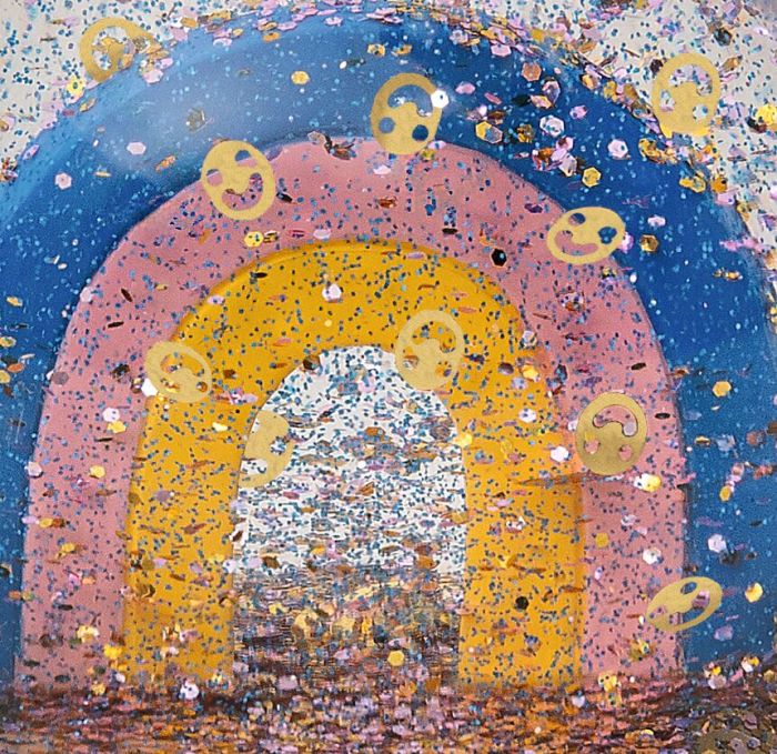 + mit buntem Glitzer und goldenen Smileys